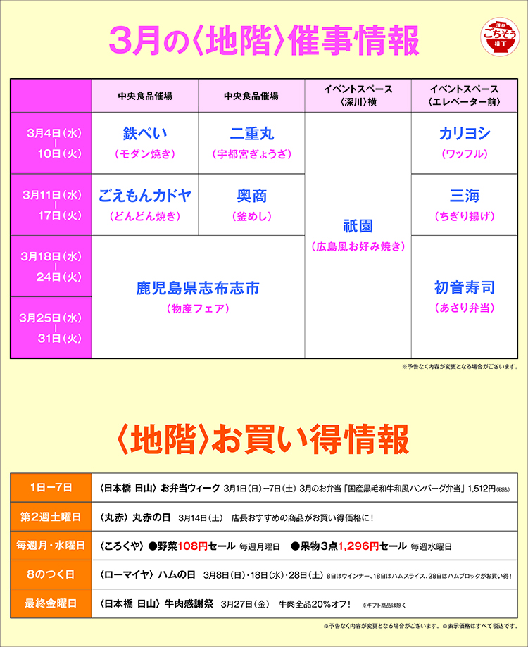 3月地階スケジュール・お買い得情報