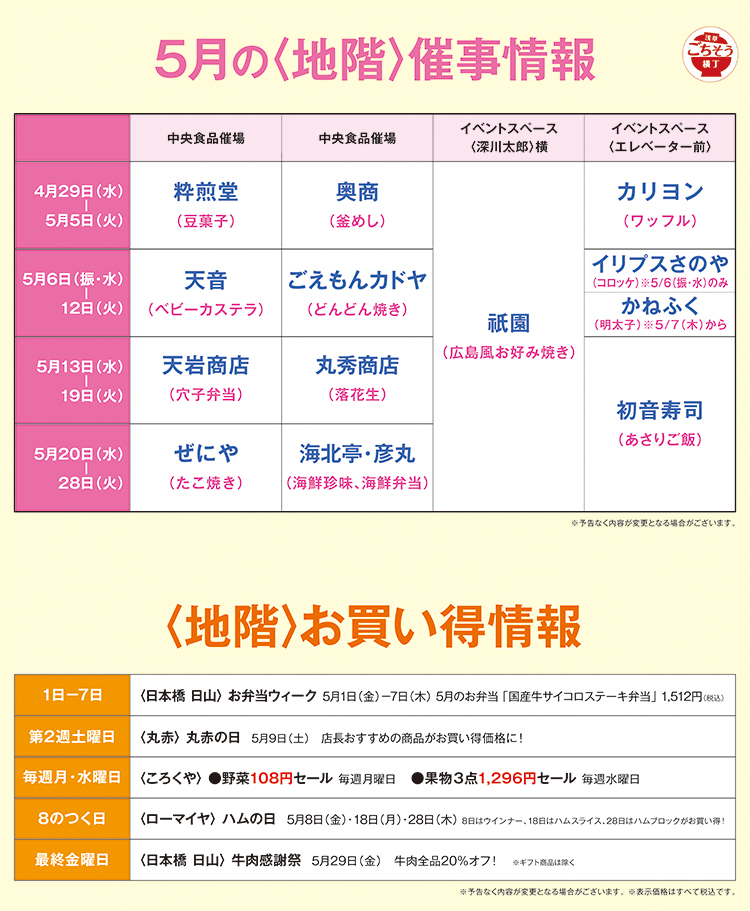 5月 地階スケジュール・お買い得情報